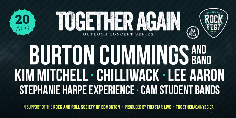Chuck @ 92.5 is excited to support Together Again – Outdoor Concert Series on August 20 featuring: Burton Cummings and Band, Kim Mitchell, Chilliwack, Lee Aaron, Stephanie Harpe Experience & CAM Student Bands!